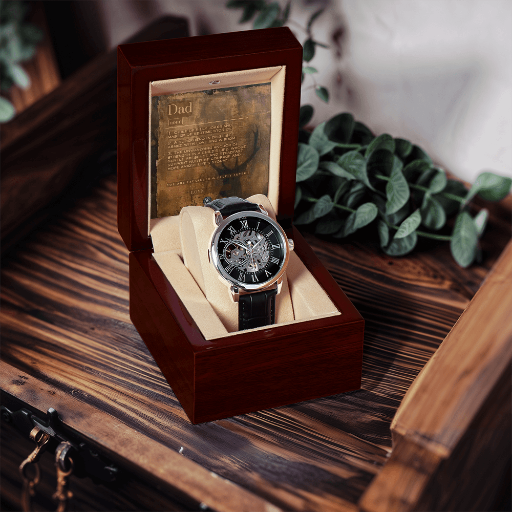 The watch is great. My dad loves the luxury box with the light they showcases the watch!! Would recommend to family and friends!!