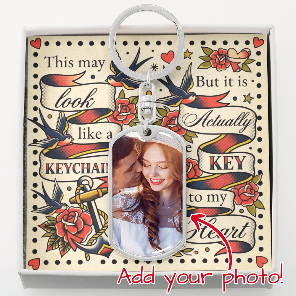 Custom Photo Upload Dog Tag Keychain: Vintage Love
